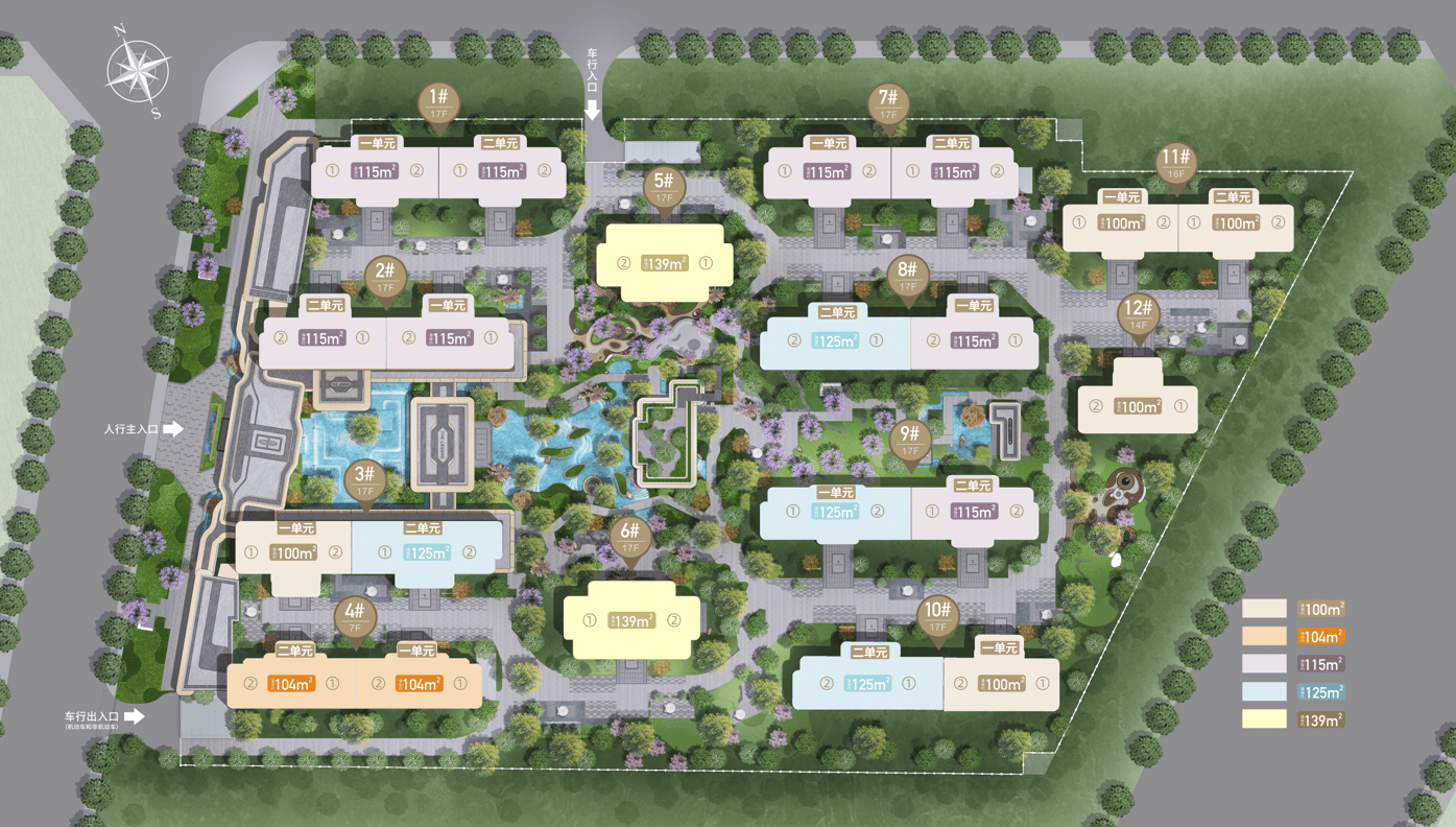 打制区域稀有的「环抱式水上会客堂」,占位东进枢纽,全南北朝向+奢阔楼间距:最宽楼间距约66米,建面约125㎡/139㎡套四三卫